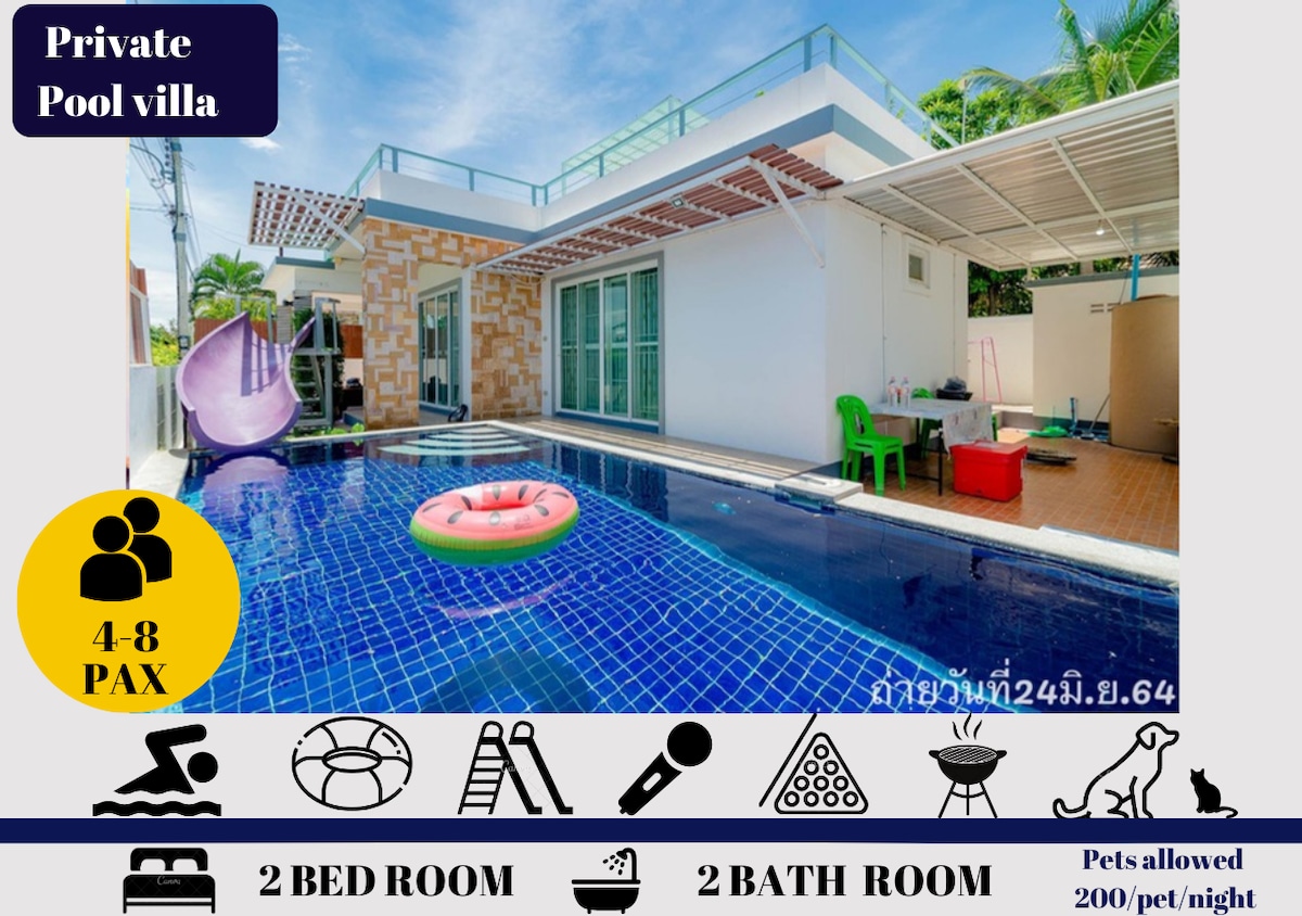 Welcome to ‘Hostmaker, We want you to feel like you came to see cute art. in the artist's gallery. ✔Superhost friendly Perfect for family and friends. (Upto 16 guests) ✔Private Pool with Slider and kids zone. ✔BIG TV, bluetooth sound-bar with Full option Karaoke. ✔5-Star In-Room Hotel Amenities. ✔No Sharing bath, All en-suite bathrooms. ✔Next to supermarket and 7-11. & 10min to the beach. ✔*** I guarantee an absolutely private stay. No sharing, no disturbances. ✔*** 24hr support by น้องมังคุด