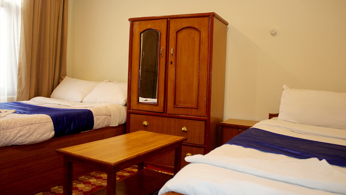 Apartment is cozy from where hosts can see panoramic view of Mountain from the roof and their room as well. There is small library at the top where guest may read novel and English newspaper. The room is 210 square feet length and it has two windows with balcony from where guest can see beautiful scene of mountain range and Fewa lake. Departmental store, International Medicare Hospital are situated very near from the apartment. The main city of Lakeside is just 5 minute walk distance.