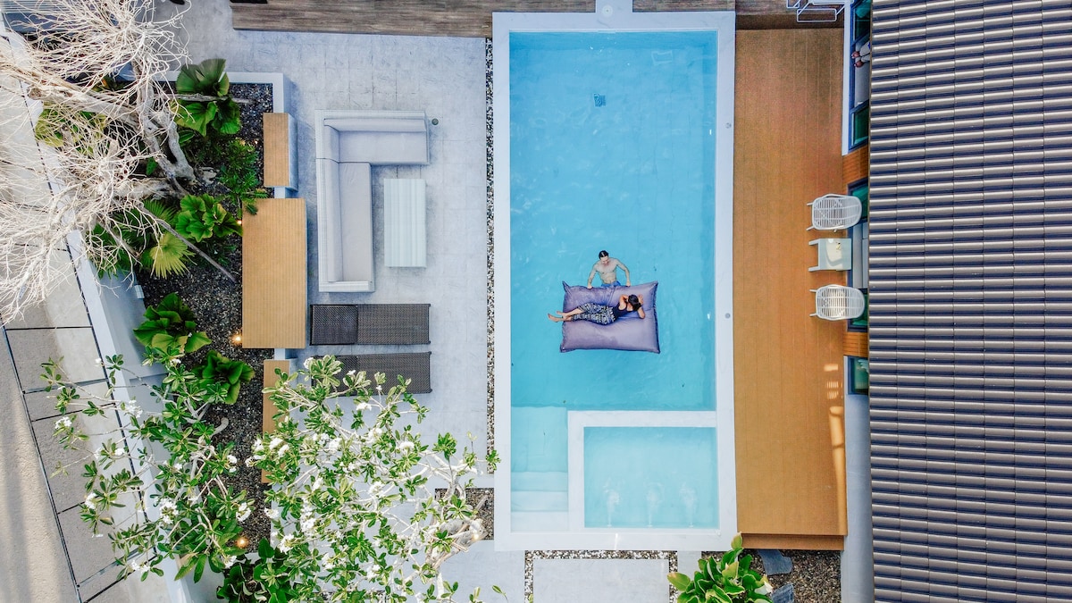 With fresh interiors that blend contemporary Thai design, simple but with hidden artistry. these expansive 140-square-meter pool villas are suited for families traveling to Krabi.These ten Duplex Pool Villas can accommodate up to 6 adults or 5 adults and 1 child. These fantastic 140-square-meter private pool villas have three bedrooms, a king-size bed, and a queen-size bed, a separate furnished living room,a kitchen with an Induction cooker and microwave,There are two bathrooms first floor with.