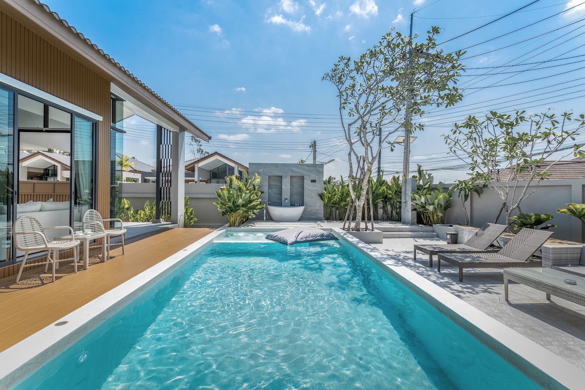 Escape to our tranquility tropical pool villa Located just 5 minutes away from Aonang Beach. A spacious retreat perfect for relaxation in our beautifully two-bedroomed residence sleeps six and features a private pool, outdoor jacuzzi bathtub, kitchen, dining area and landscaped garden. Design and peaceful atmosphere. Discover an amazing inside-outside Villa, where you always feels to be connected with the tropical garden and the nature, while being in a luxury and comfy place.