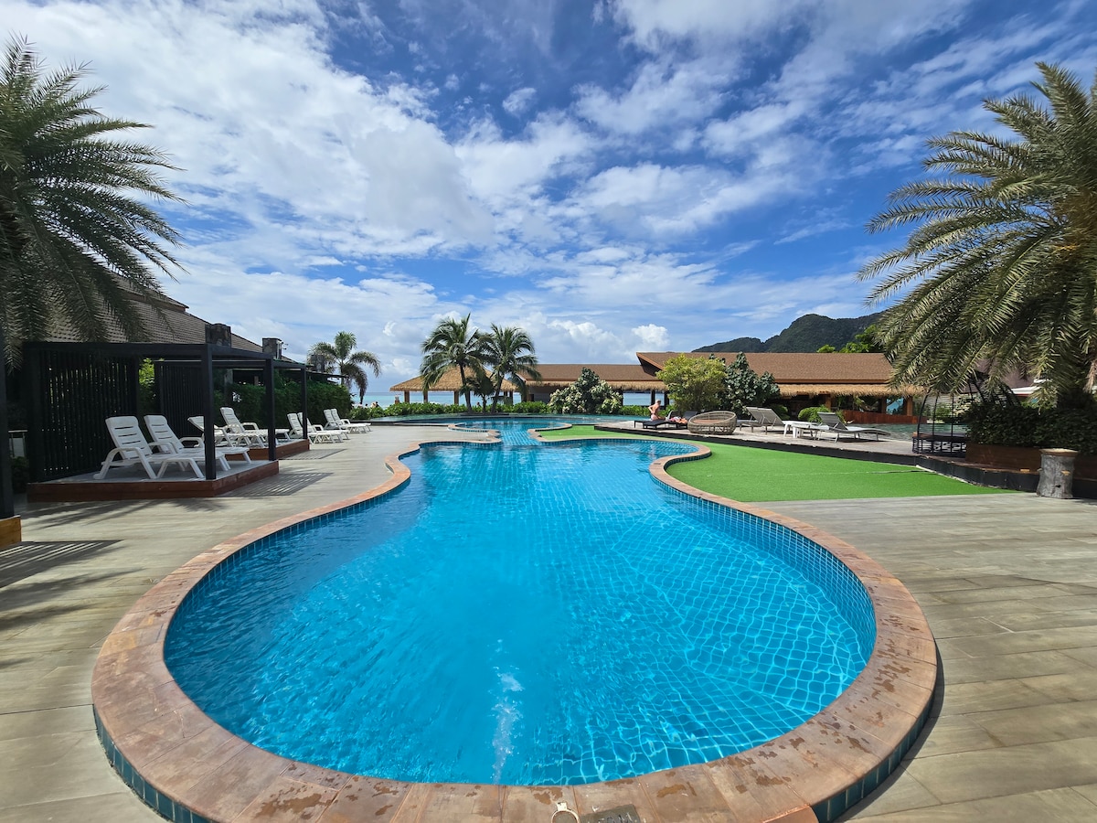 Luxury Tripple Deluxe Room with Breakfast is located on the end on Tonsai Bay,the City of Phi Phi. 800 Meters by Walk you can enjoy the scenic View along the small natural road.Our resort is not far from Clinic /Hospital so make sure that you will be looked after. The pool on the beach is signature here. Not far from us Plenty of locals food & bars Yet quiet enough so you wont hear noise. Daytrip can be organized by me just drop me a line.