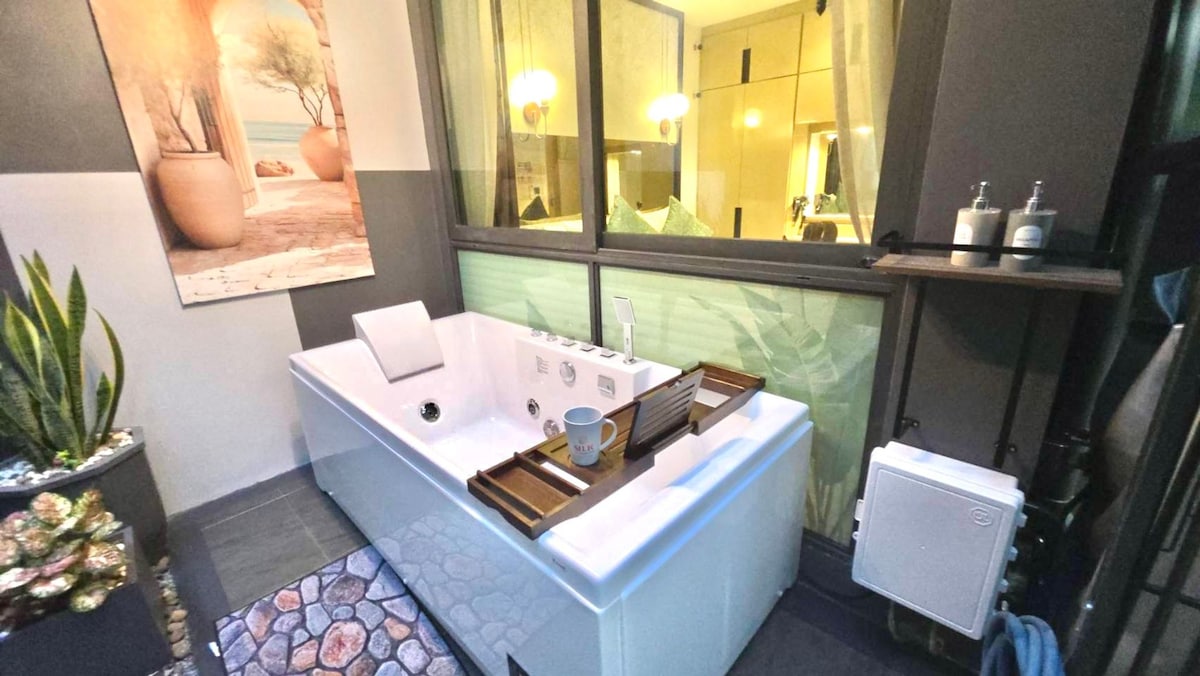 Opened in Dec 2021, our modern vertical pool villa in Krabi blends comfort and nature. Located near Lotus’s supermarket and restaurants, convenience is close by. The villa has three bedrooms, three bathrooms, and a poolside toilet, plus an outdoor pool and a relaxing indoor space. Please note nearby construction may cause some daytime noise, and we’ve adjusted rates accordingly. Thank you for your understanding as we aim to ensure a pleasant stay.