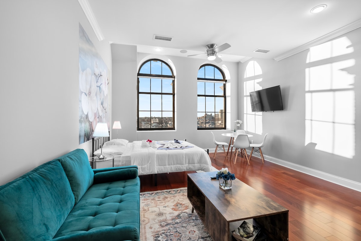 Welcome to Hope House! We are set up as a 1 or 2 bedroom apartment, depending on booking details. Our unit offers lots of light & is ground level so you don’t have to carry luggage up & down stairs. Custom window blinds open top down or bottom up to maintain privacy to your liking. There’s secure, gated entry to the building, an easy to use smartlock, fast WiFi, & a 60” HDTV equipped w/ FireStick to access all your favorite subscriptions. Proximity to Fishtown, NoLibs, & transit can't be beat!