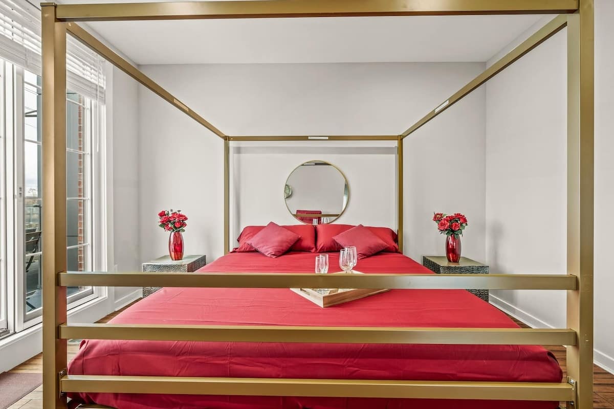 3 Bedroom, 2 Bath 3 Queen Beds Whether you’re in Philly for history, business, or a weekend escape, this spacious three-bedroom makes it easy to settle in. You’ll have a full kitchen, in-unit washer/dryer, a dedicated workspace, and a comfortable layout for groups—plus access to standout building amenities like a gym, coworking space, and community lounge—right in Old City near Independence Mall. Note: This apartment is in a lively downtown area, and some city noise should be expected. Sosuit
