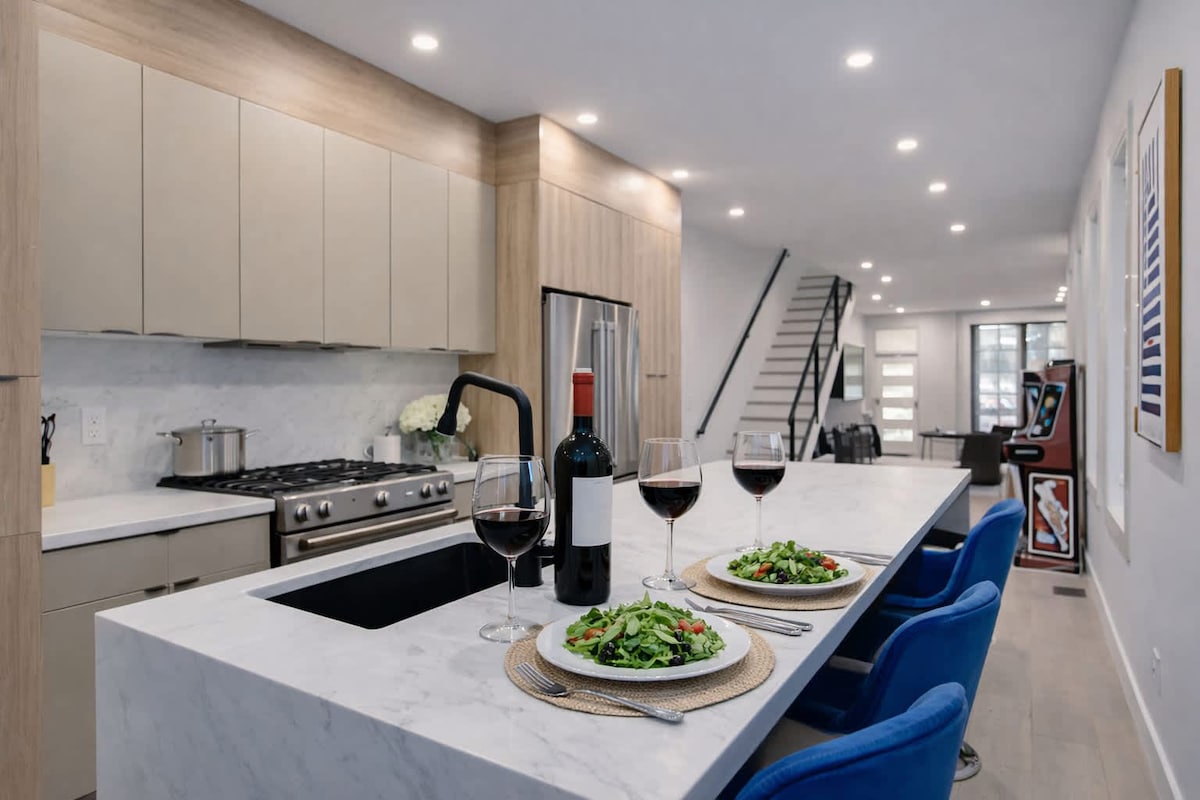 Nestled in the heart of downtown Philadelphia's Fishtown neighborhood, this exquisitely designed 4BR/3BA home blends modern comforts with urban charm. Featuring a cozy living room, fully equipped kitchen, and comfortable bedrooms curated for both style and comfort. Great outdoor spaces include city views from the rooftop deck and a back patio during warmer months. Awesome location blending eclectic eateries +nightlife, with family first neighborhood comforts. You're sure to have a great stay