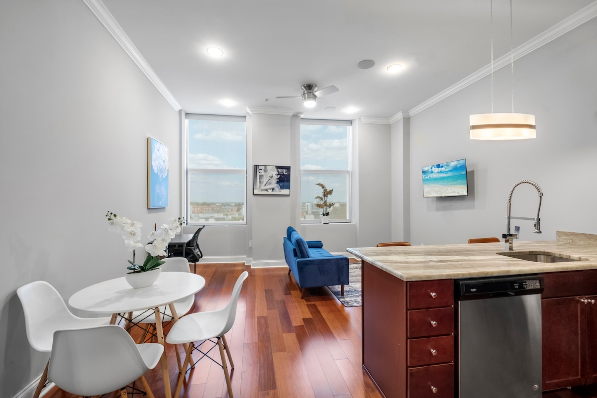 Experience the ultimate urban retreat in Center City, where upscale amenities, modern design and city convenience come together to create your perfect stay. Highlights: • Deep-cleaned before every stay. • Complimentary gourmet coffee, fresh linens, and premium bathroom essentials. • Co-working spaces, conference room, and lounge • Outdoor grills and dog run.