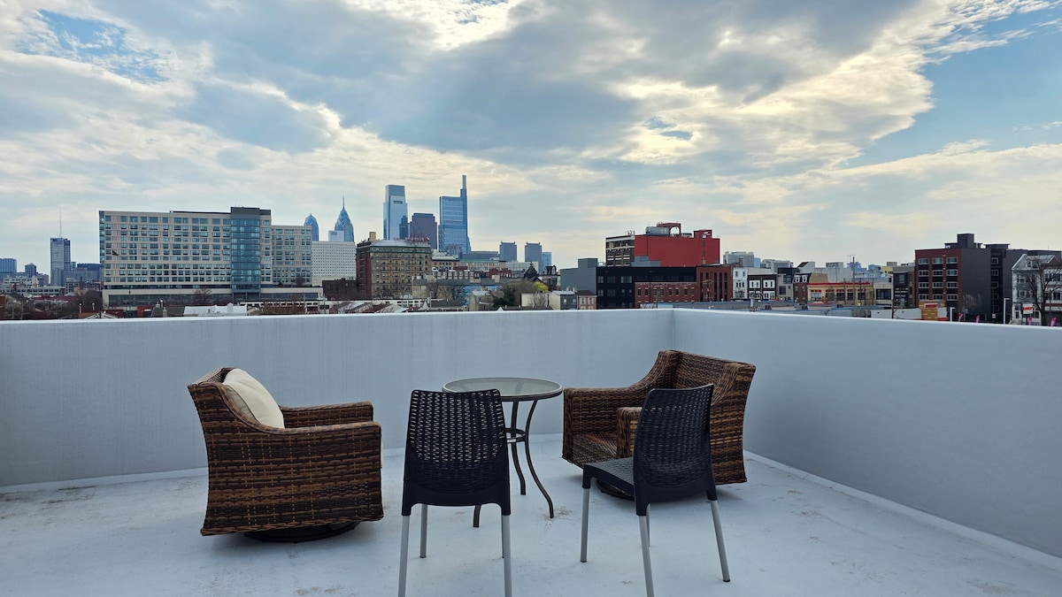 2卧室城市度假屋/特大号床套房/露台,可步行前往费城