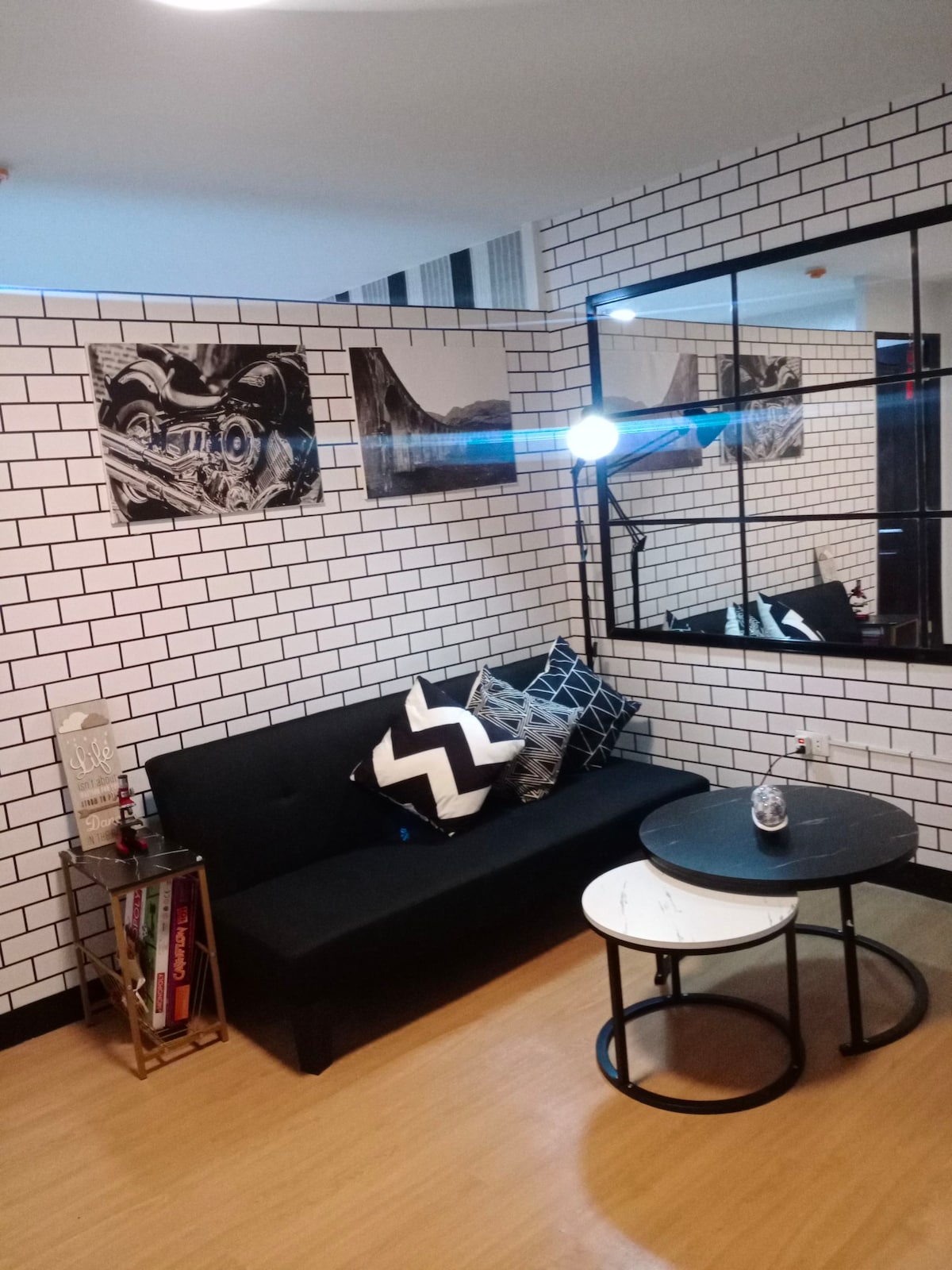 Inspired by an industrial-type black & white interior with a spacious and relaxing look. One bedroom FULLY furnished condo unit with balcony, allowed to cook, heated shower, SMART TV with netflix & primevideo and spacious study/working area. Safe, secured, clean, and situated within the Urban Deca Homes Community and near establishments for your basic needs (SM Hypermarket, Restaurants, Bank, Convenience Store, etc.) Note: Parking reservation is required and subject to availability.