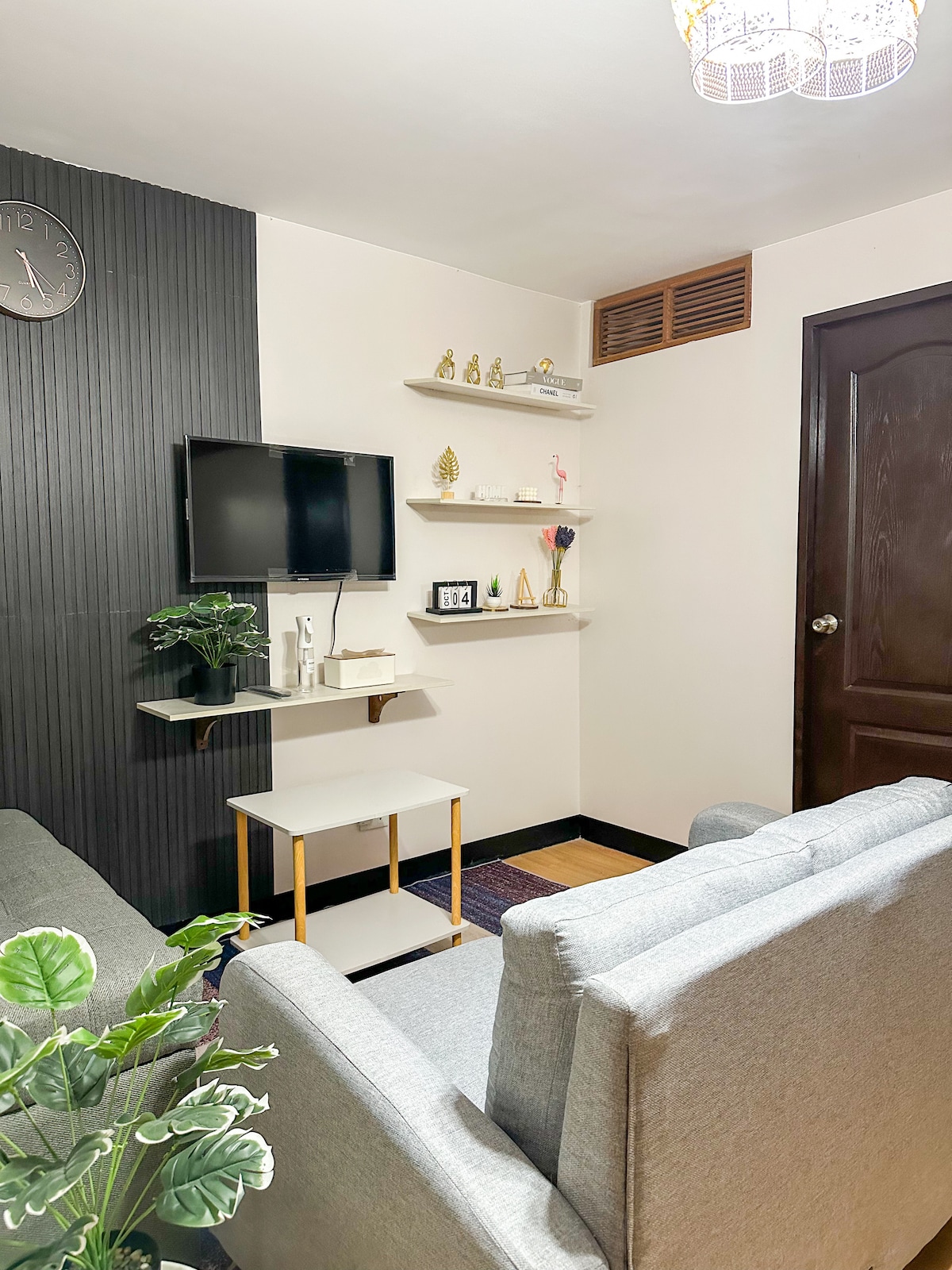 A cozy and comfortable studio unit located in the heart of SMDC Cheer Residences in Marilao, Bulacan! Our unit is fully furnished and equipped with everything you need for a comfortable and enjoyable stay, including a comfortable queen-sized bed, a sofa bed, a flat-screen TV, a dining table, a kitchenette with a refrigerator, microwave, electric kettle, and basic kitchenware, a private bathroom with a hot and cold shower, swimming pool, a 24-hour security and reception desk.
