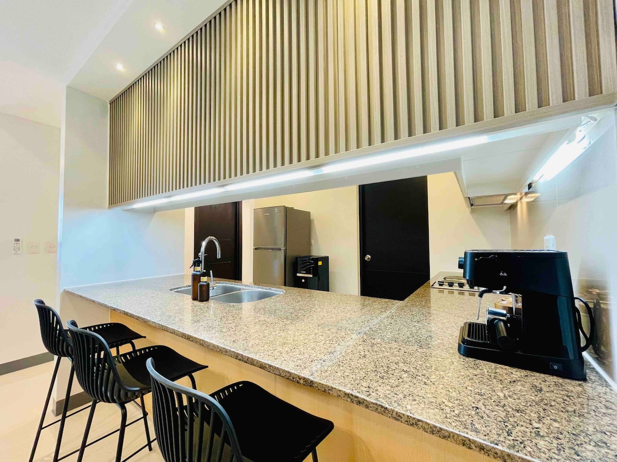 Fully furnished unit with divider for bedroom. Walking distance to groceries, convenience stores, restaurants, malls, banks, bars. Active night life! ❤ Pool, Sauna & Gym Access (w/ fee) ❤ 55" 4k UHD TV + A/C + Workspace ❤ Streaming apps available using your own account ❤ Coffee, fresh towels, and essentials provided ❤ Filtered & Alkaline Drinking Water ❤ Child & Dog-friendly ヅ Accessible paid parking off premises ヅ Reliable WiFi perfect for remote work