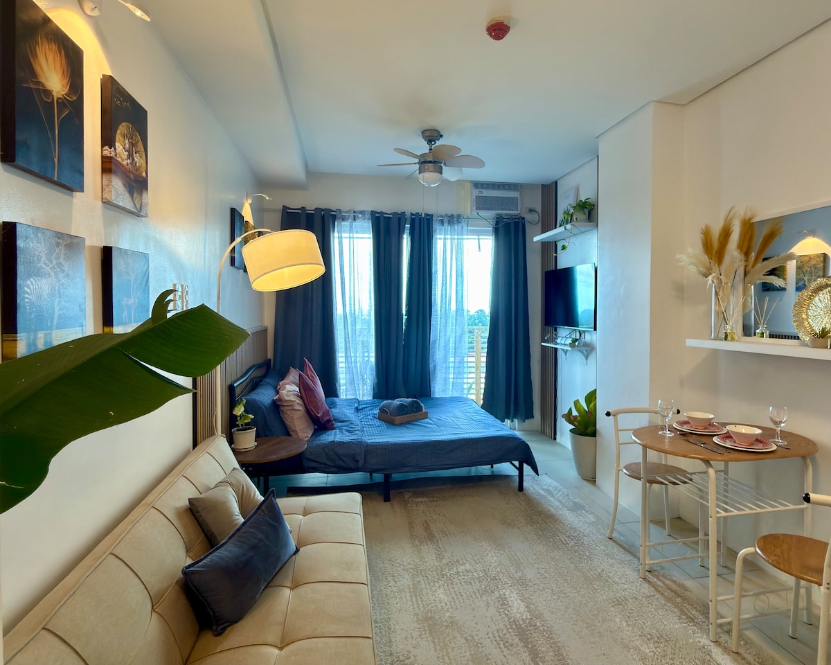 Kick back and relax in this calm, stylish space. Blueberry House is located in Shore 2 tower 3, 10 minutes away from mall of asia.. this condo offers clean, refreshing design that is perpect for small family, solo adventures, and business travels..