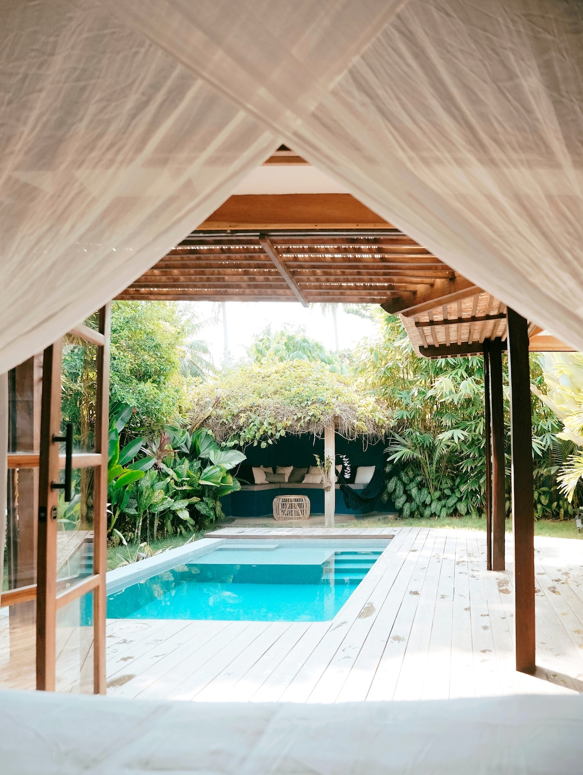 Welcome to Banyan Villa, a tranquil retreat strategically located just a 5-minute drive from the center and a short walk to Danao Beach, with restaurants and stores in the vicinity. Tailored for private getaways for couples or gatherings with family and friends, our villa features a private pool shaded by an ancient banyan tree, an open living area, a full kitchen, and the latest modern amenities. Surrounded by rare plants, it creates the perfect blend of comfort and natural serenity.