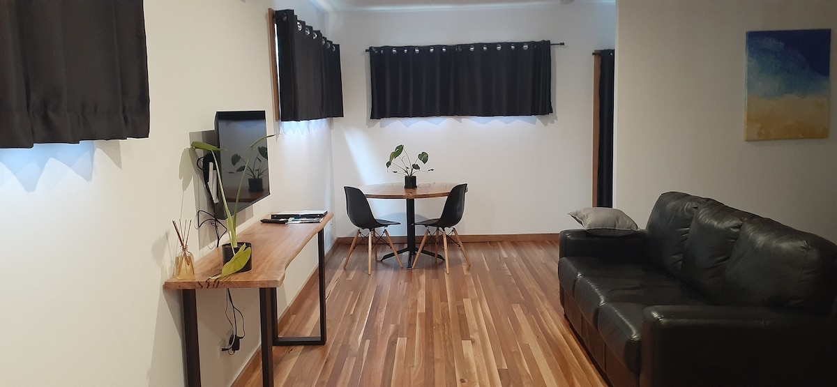 Yokkaso is a self contained stand alone studio at the front of the properties main residence. The accommodation is brand new with beautiful hand crafted furniture and modern amenities. Enjoy light breakfast foods including muesli and spreads. Parking is on site at the front of your own private entrance. Short walk to the Colonnades beach which boasts beautiful sunsets and a place to reconnect. Yokkaso is within walking distance to the local tavern, restaurants and a grocery store.