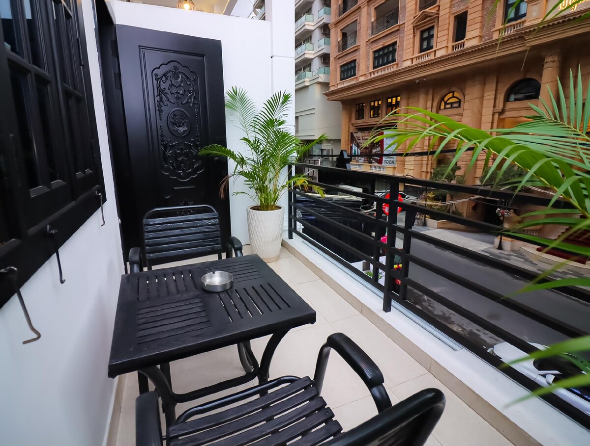 K76.酒店客房+阳台和城市景观,10分钟可达河滨