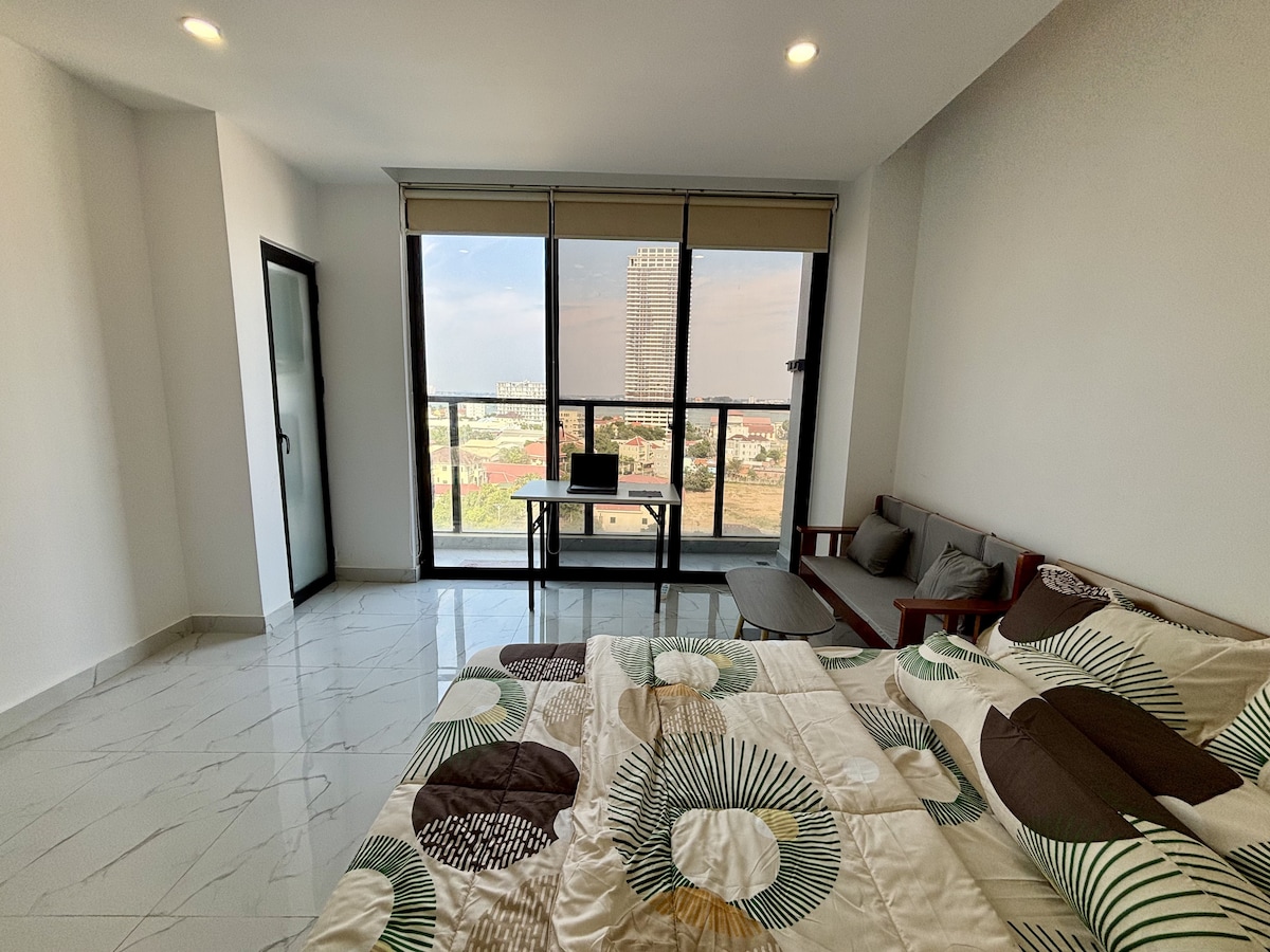 Our studio is on the upper floor with a large balcony to enjoy fresh air and the beautiful city view. Our space is perfect for all travelers, with a special focus on remote workers seeking a comfortable home away from home. Located in Toul Kork which is the center of the city surrounded by cafes, restaurants, local markets, super markets, bus stops, train station, and other tourist sites. Just 5 mins to the shopping mall and dining centers Eden Garden.