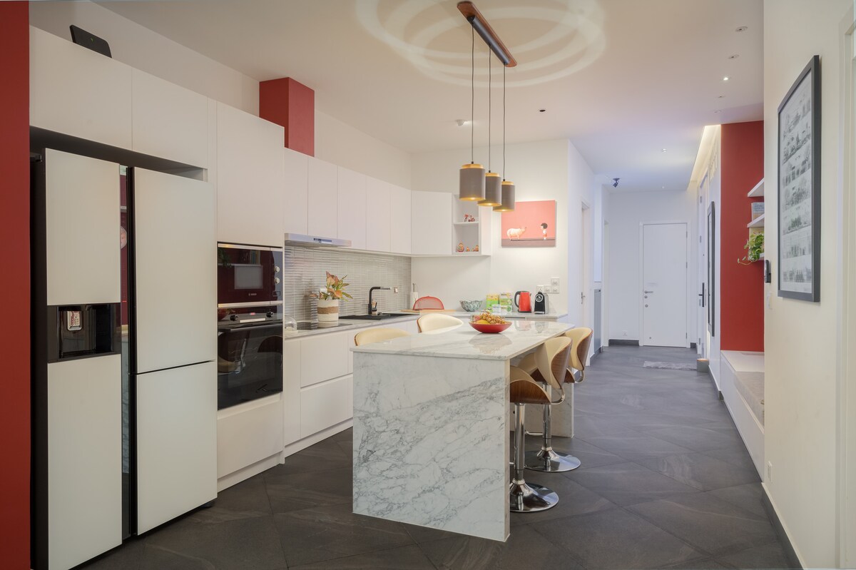 This beautiful, bright loft-style apartment of 155 sqm has been fully renovated in 2023 and is exquisitely furnished. Huge, sound and heat proof panorama windows ensure a relaxing and cool time as you enjoy stunning views over the Tonle Sap and Mekong rivers with the vibrant riverside atmosphere. You'll like the practical though high quality equipment such as parquet flooring and individually adjustable lighting, 2 Smart TV's, Sonos 5 speakers and the modern kitchen and bath equipment.