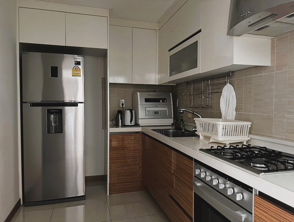 About my 1 bedroom apartment, Fully set up with & comfortable Furniture & Fitting Fully Air-conditioning 1 king bed with en suite bathroom Free Wi-Fi Available to use: Toiletries Ironing set Microwave Hair Dryer Safe Deposit Box Washer Kitchen sets (pan,pot,utensils etc) Water cooler (hot & cold) Guest access All guests will be able to enjoy the full facilities within the condo Infinity Swimming pool Indoor Gym (with Aircon) Free Parking Viewing Gallery