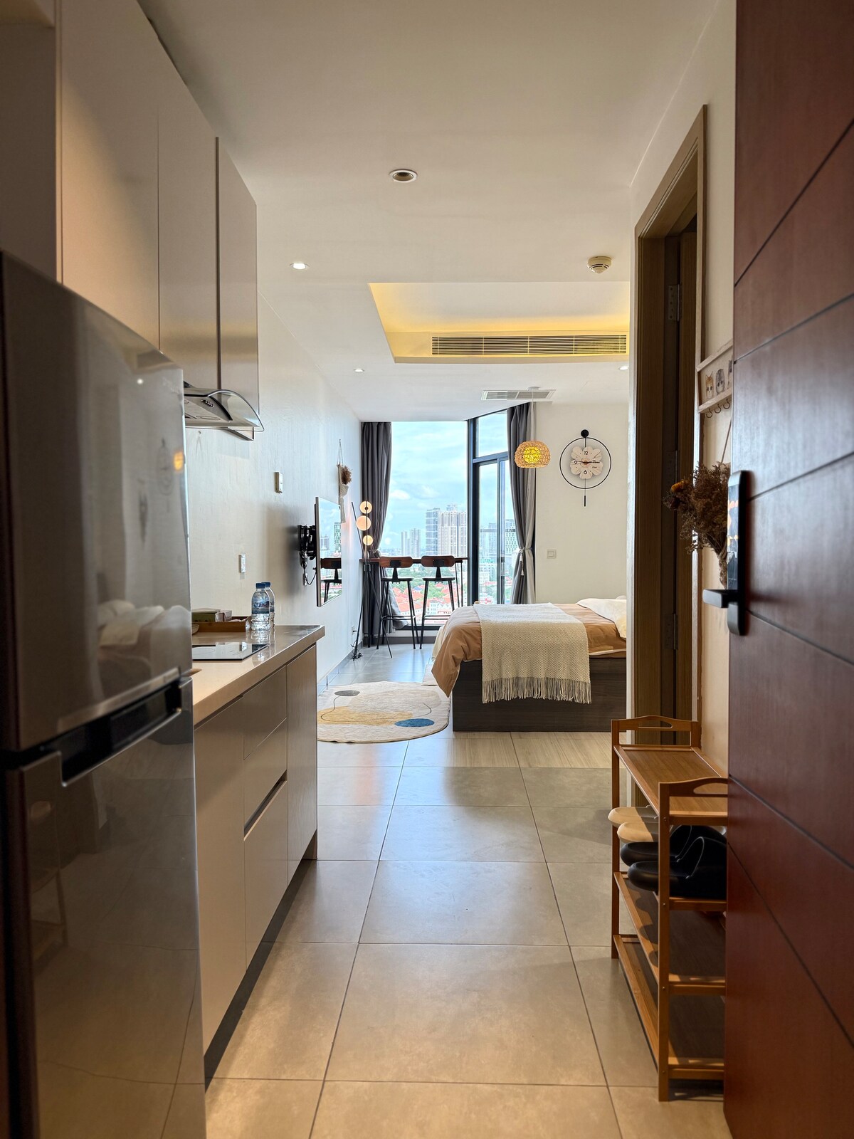 *Please note that for monthly stay (from 28 nights), there'll be an electricity charge at the rate USD 0.25/kwh. *Kindly message us if you need air port pick-up Situated on the 11th & 12th floors with spectacular city and river views, the spacious and bright 38sqm studio comes complete with a spacious balcony, a kitchen with modern appliances, a wall mounted dining table, and complimentary laundry service. Suitable for the single business executive or a couple who want to enjoy a relaxed stay.