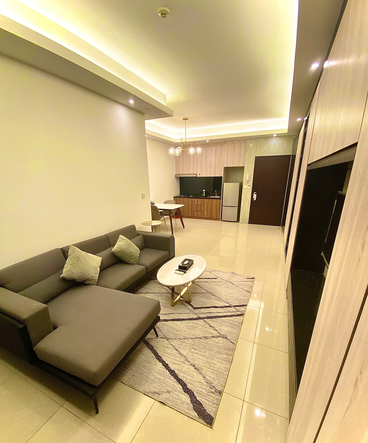 Indulge in this extraordinary spacious fully furnished One-bedroom apartment with floor areas of 110sqm and overlooking the stunning view of the Phnom Penh city and night light. The apartment features spacious and stylist living room area, a fully-equipped modern kitchen, dining area, one bathrooms, high-speed internet access, washing- machine, cable TV , Air-conditioning and Refrigerator, and daily housekeeping service