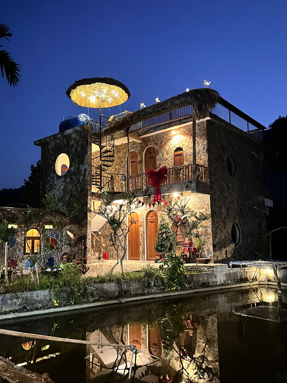 Tận hưởng âm điệu của thiên nhiên khi ở tại địa điểm độc đáo này. Một ngôi nhà bên bờ sông, nhìn ra cánh đồng lúa và những ngọn núi Bạn ở trên một ao cá với rất nhiều hoa cỏ xung quanh Sống trong ngôi nhà riêng ở một nông trại nhỏ cùng chủ nhà là người địa phương Dễ dàng đến đây bằng xe buýt từ các thành phố Chủ nhà thân thiện và sẵn sàng hỗ trợ bất cứ khi nào