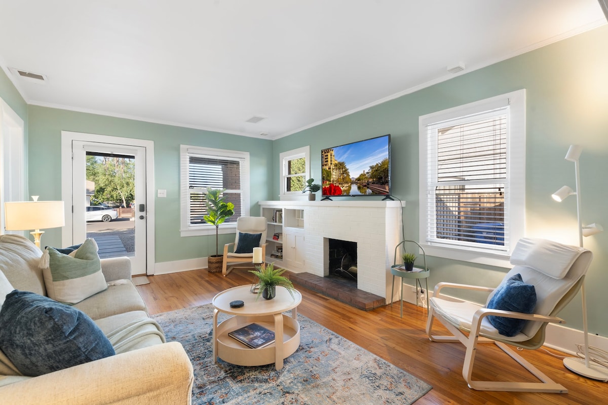 Sweet slumbers and good vibes await you in this fully renovated historic Carriage House from 1923. This beautiful and cozy space is flooded with natural light from 95 panes of glass. You will be soothed by luxurious bedding on a queen size Tuft and Needle mattress. The space formerly served as an artists studio. Nestled in the privacy of a well tended garden, the property was designed as a sanctuary in the heart of the city.