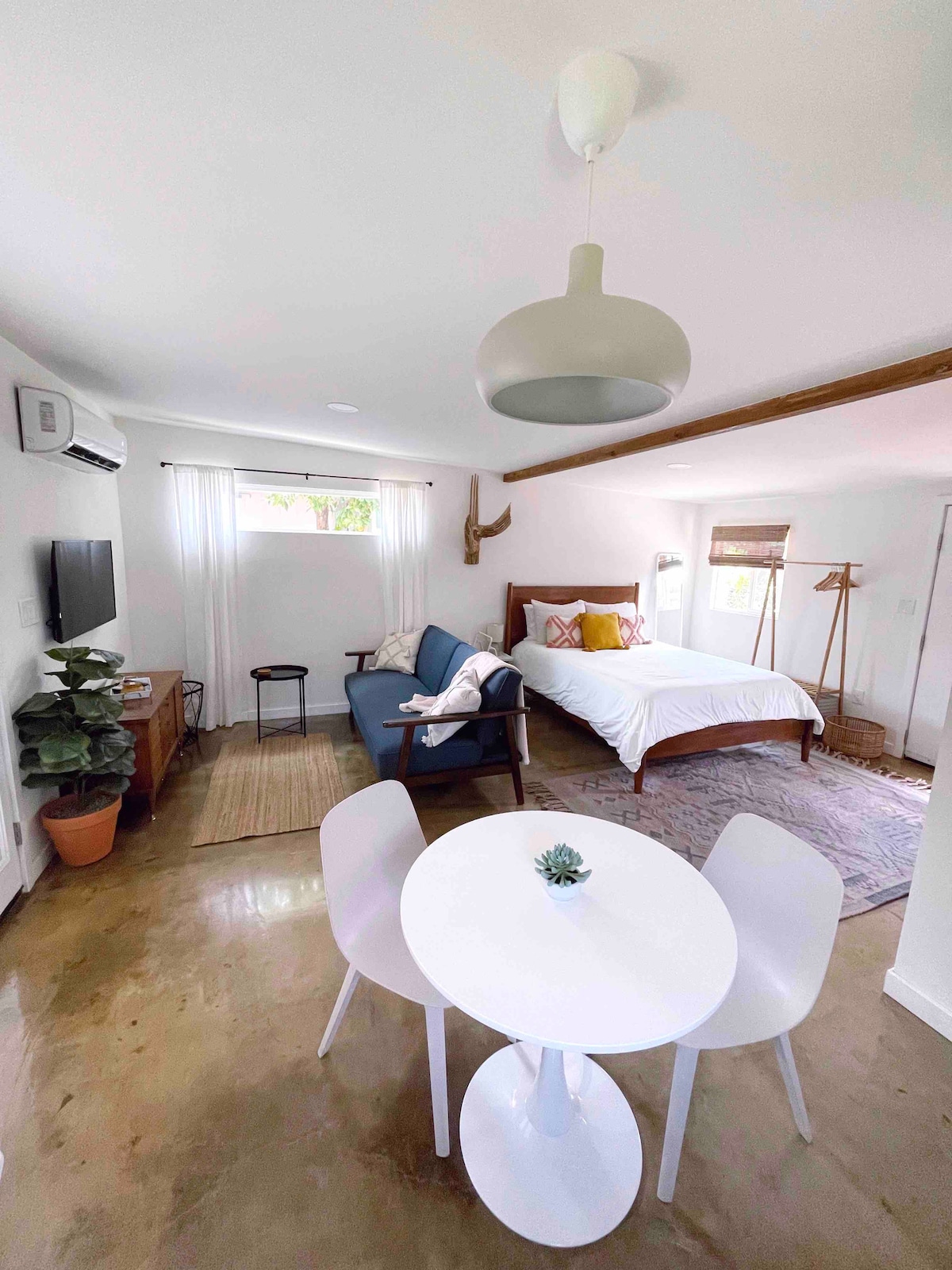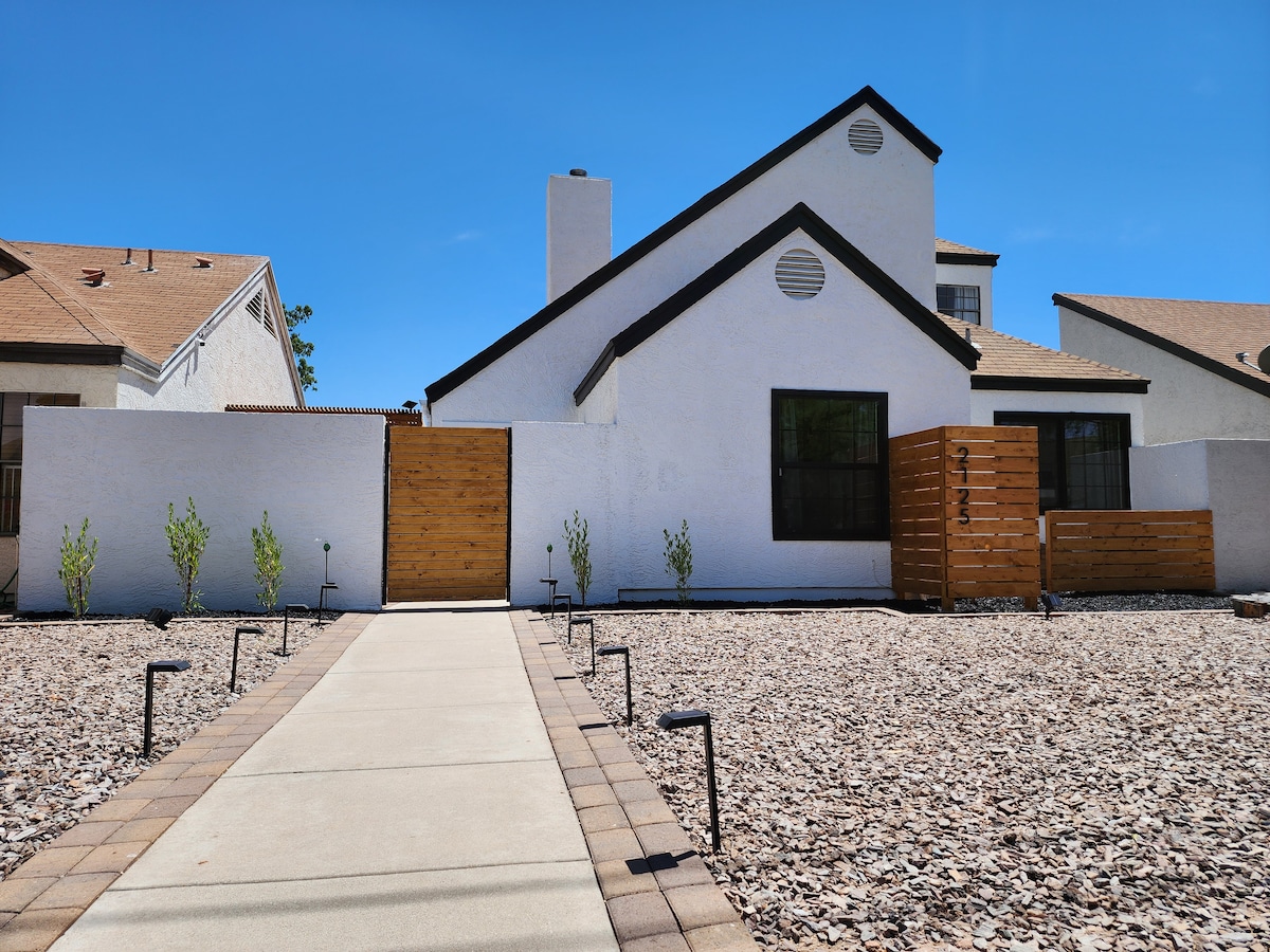 This home was renovated by a professional designer (@designxwoods) and showcases unique details and inspiring finishes around every corner! Soak in the natural light in the airy and open living space wrapped in white brick and even venture up the ladder to the loft for a meditate moment. From the retro furnishings and oak hardwood floors to the spa-like bathrooms, the home is warm and charming and filled with amenities to make your stay comfortable. It is perfect for larger groups or families wanting a cozy stay near the best restaurants and shops Phoenix has to offer. The brick paved back patio offers a great al fresco dining option with the beautiful Arizona sunsets. Disclaimer: For your safety of our property and our guests, one surveillance camera has been installed on the front porch. Guests have access to the entire home, including back patio. PLEASE NOTE: The loft is accessed via a steel ladder that is secured to the wall. We ask that guests use ladder carefully and at their own risk. We are always available via telephone or through the app. The house is in the Coronado Historic District, a quiet residential community of young families and artists. Several restaurants and coffee shops are within walking distance. Downtown Phoenix is a 5-minute drive away. Guests are welcome to park on the gravel driveway, two cars can fit tandem. We have a two car maximum at the property. PLEASE NOTE: The listing photos were taken before the window treatments were installed. The master bedroom currently has a blackout drapery panel. The guest bedrooms have blackout roller shades and the living room windows have privacy roller shades.