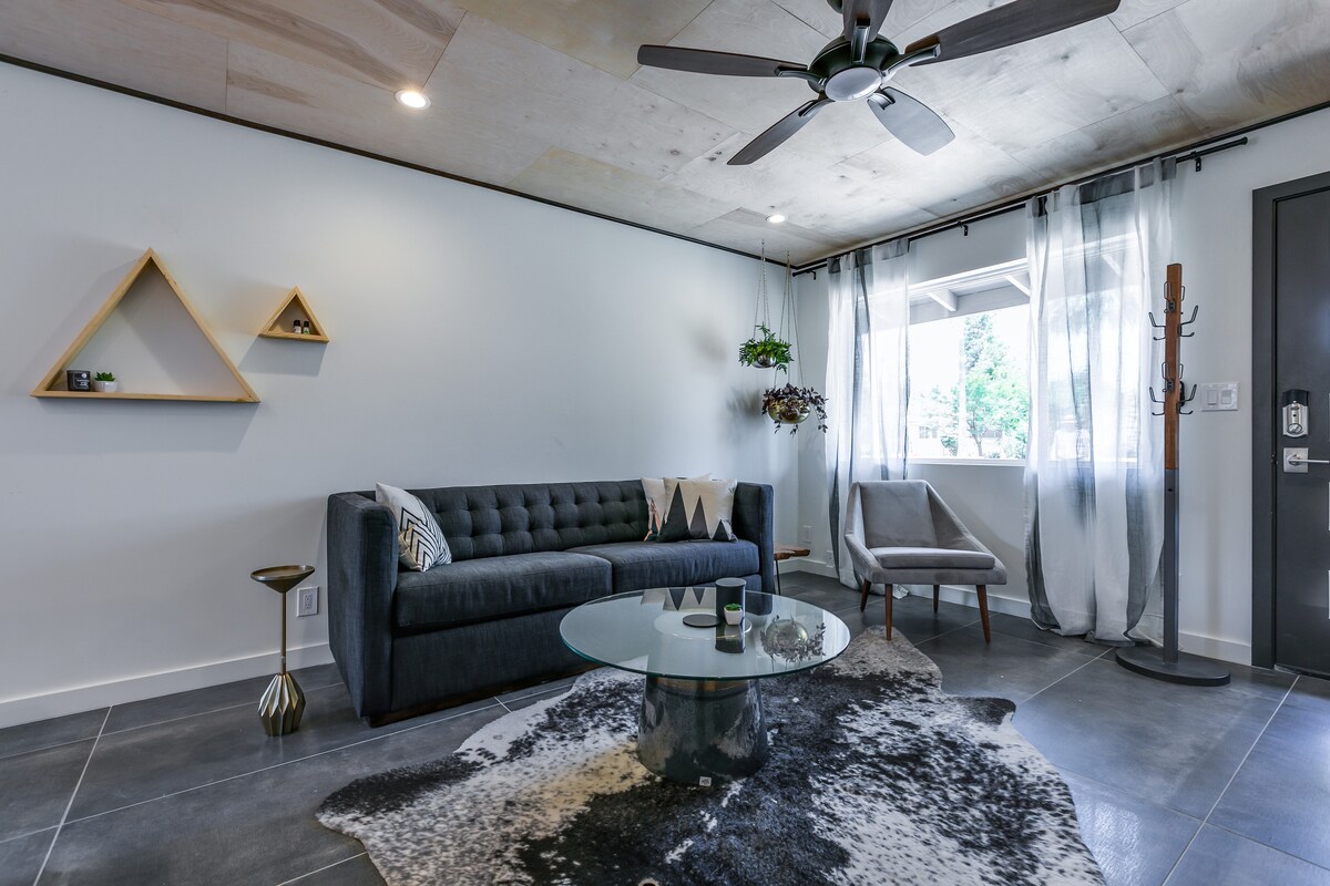 Discover our stylish, pet-friendly 2BR mid-century modern condo, a classic Haver property. Comfortably fits 4 with hotel-quality beds, a full kitchen, and a shared courtyard with BBQ. Enjoy natural light, eclectic decor, and super-fast WiFi. Located in a vibrant neighborhood, you're a short walk or ride from local restaurants, bars, and farmers' markets. Perfect for work or play, with easy access to downtown and hiking trails.