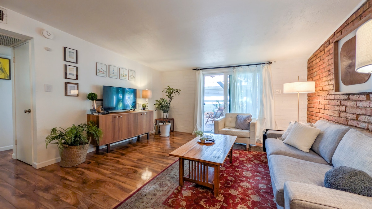 A mid-century modern condo with character: fresh, comfortable with everything to make your stay pleasant. Full kitchen, 2 queen beds, quality towels, and linens. The entire condo is yours. BBQ gas grill, patio with table and seating. Central location: airport (8.2 miles / 15 min.), downtown Phoenix, Scottsdale, Convention Center (8 miles / 15 min.), Sports parks: all easily and quickly accessible. **Attractive 2026 Summer Rates for 28+ day stays 6-9/26**