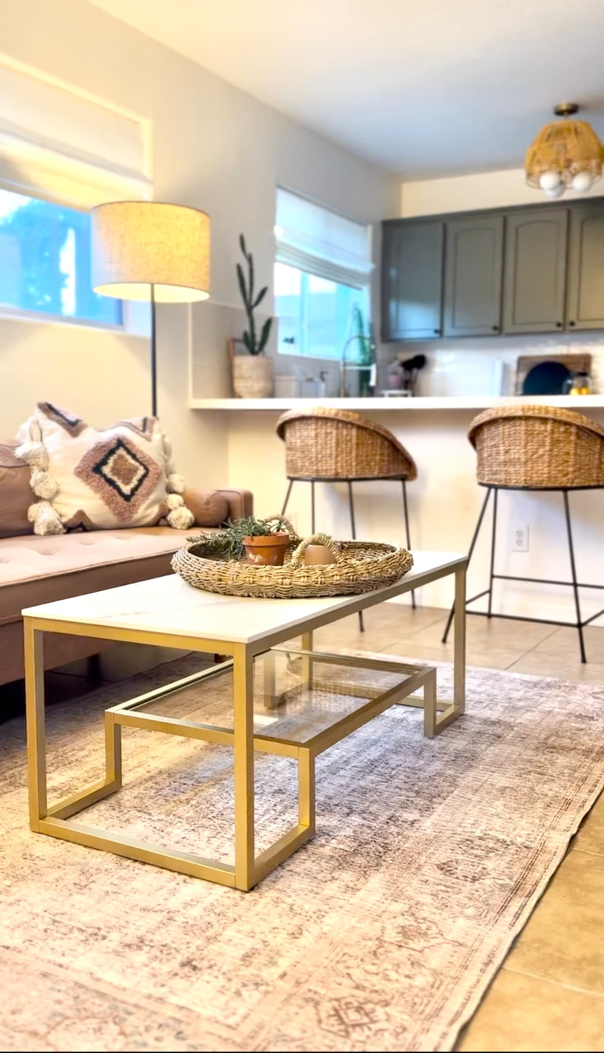 The Space: Welcome to Palm Paradise, your relaxing retreat in the heart of Old Town Scottsdale. renovated in October 2024, this condo blends stylish desert-boho design with all the comforts of home, creating a space that is both beautiful and functional. Unwind on the cozy green corduroy sectional, perfect for napping, or step out onto the private balcony to witness spectacular sunset views over Camelback Mountain. Step into the tranquil bedroom with a king-sized bed and high quality linens.