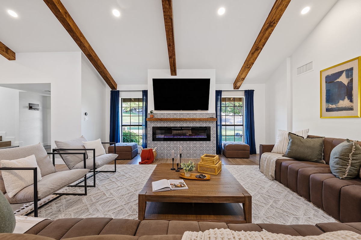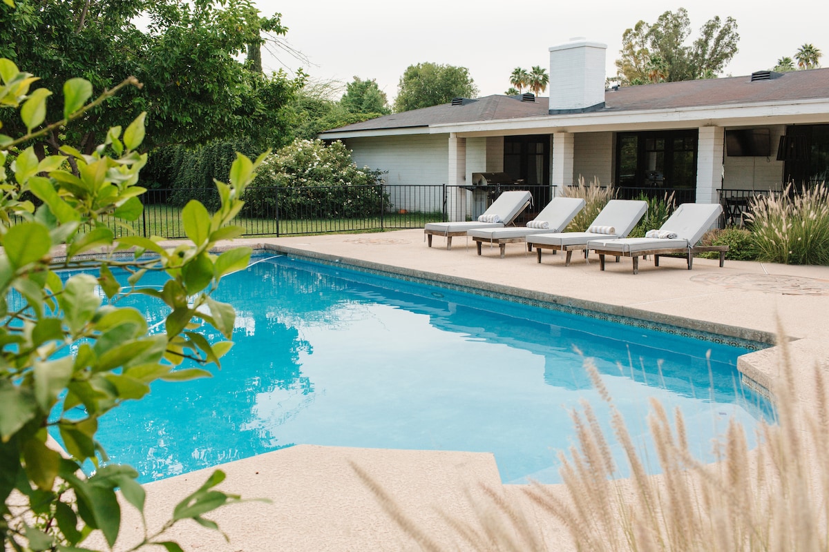 Freshly remodeled and designed by Lexi Grace Design. This southwestern single-story ranch home sits on an acre of green grass and mature trees in a quiet neighborhood. 5 bedrooms that comfortably sleep 12 on new Tuft and Needle Mattresses, beautiful bedding and fully furnished for any stay length. Come enjoy beautiful AZ sunsets by the pool*, cuddled up next to the fireplace, or in the spa at night. Thoughtfully designed for an amazing stay experience. *Pool heating upon request w/ flat fee