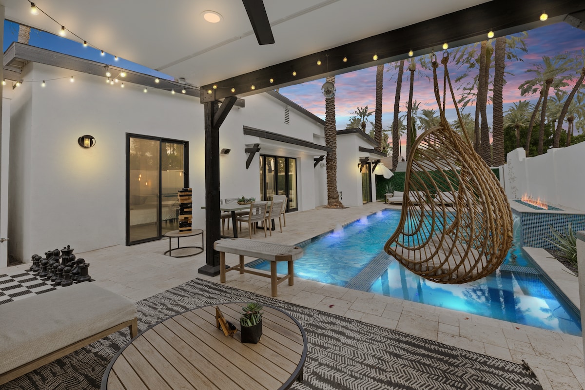 Welcome to your private villa, 8 minutes from Old Town Scottsdale, the perfect getaway. Sleeps 16 friends & family to the heated pool*, spa, and fire. pit Cook outside in the cabana kitchen, tunes on the surround sound throughout, play life size chess, dine, wine, or lounge on the sun beds. Slide open the glass wall to inside/outside living at it's best. 4 bedrooms, 3.5 bathrooms, and a wide open layout with soaring ceilings in modern luxury. Professionally designed by Style Me GHD.