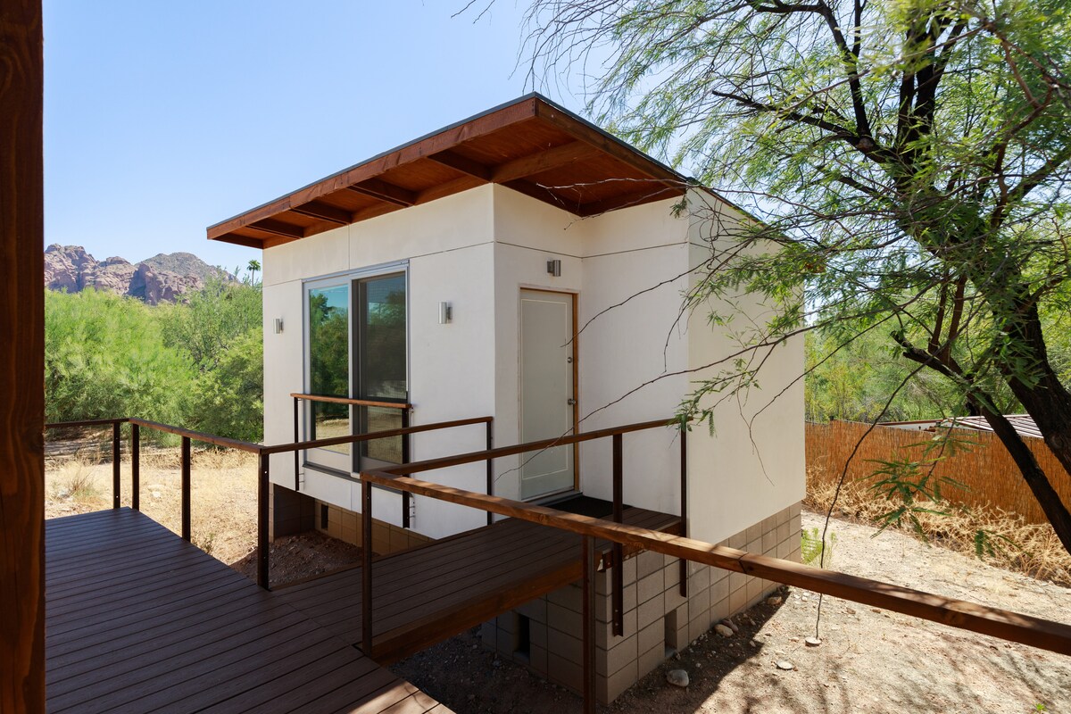 * Private, bright guesthouse immersed in a peaceful oasis of lush landscaping. The guesthouse is right in front of our swimming pool. * Fully remodeled: Kitchen, TV, Wifi, Nespresso & more. * Central location: 10 mins from Old Town Scottsdale, ASU, Sky Harbor Airport, Spring Training & more. Check out my profile for two Luxury B&B suite listings in the main house. Private bedroom & bath, full access to living areas + breakfast. Ask about photoshoots or events across the various property areas.