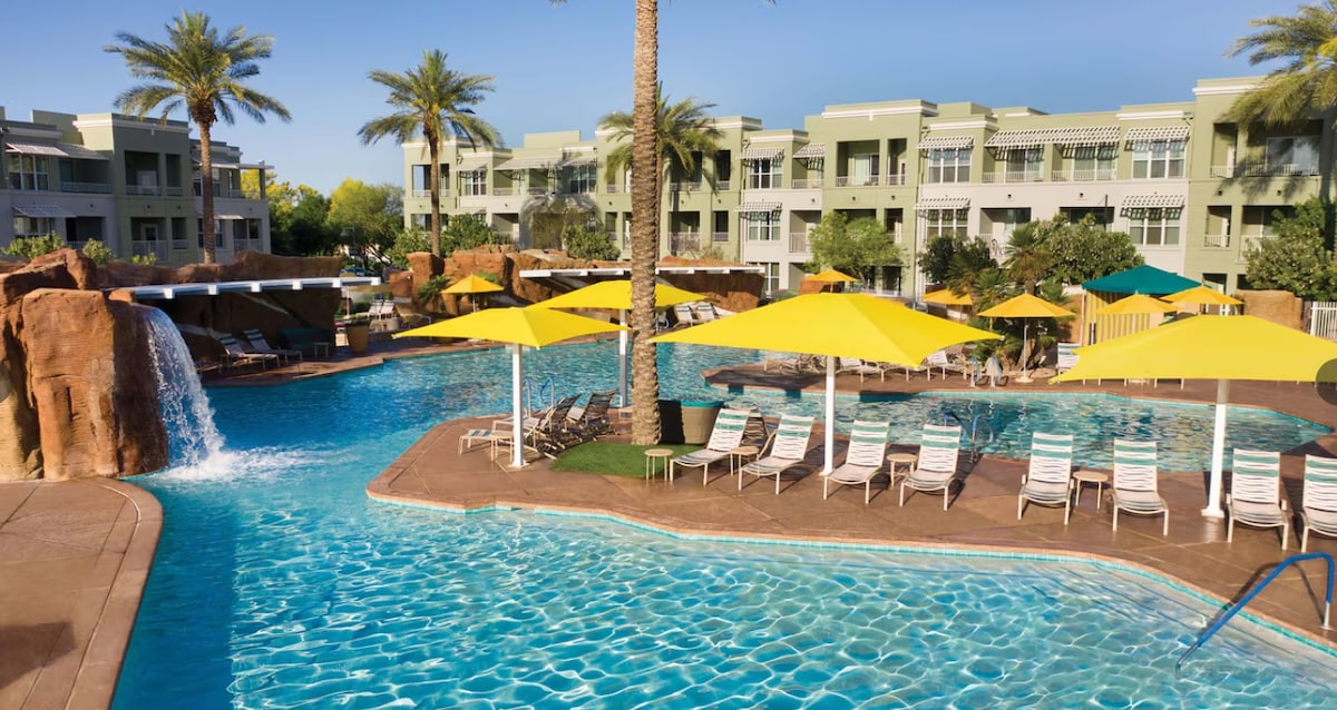 This is Marriott's timeshare, ideally placed, just a short drive from the Grand Canyon, Sedona and other attractions. Enjoy a few rounds of table tennis, exercise in our fitness center or swim in one of swimming pools while your kids play on the splash pad at our family-friendly resort in Phoenix. Indulge in a poolside meal at Canyon Springs Bar & Grill. Units are available in 3 sizes: Studio, 1 and 2 bedrooms. Price is typically 25-50% higher for each upgrade. Please inquire about availability.