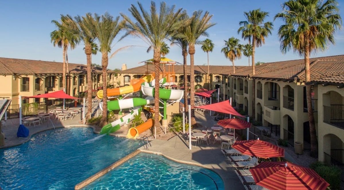 This is Marriott's timeshare, ideally placed, just a short drive from the Grand Canyon, Sedona and other attractions. Enjoy a few rounds of table tennis, exercise in our fitness center or swim in one of swimming pools while your kids play on the splash pad at our family-friendly resort in Phoenix. Indulge in a poolside meal at Canyon Springs Bar & Grill. Units are available in 3 sizes: Studio, 1 and 2 bedrooms. Price is typically 25-50% higher for each upgrade. Please inquire about availability.