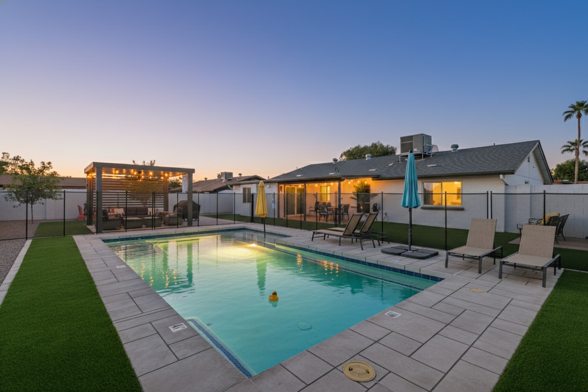 Welcome to Scottsdale Great Escape, your spacious and sunlit retreat. The open layout invites an abundance of natural light, creating a warm and inviting atmosphere. Whether you're here to work or unwind, we've got you covered with high-speed WiFi in the dedicated workspace, a fully equipped kitchen, a delightful backyard patio with an outdoor grill, and a cozy sofa where you can unwind and enjoy your favorite TV shows. For added convenience, there is an attached garage.