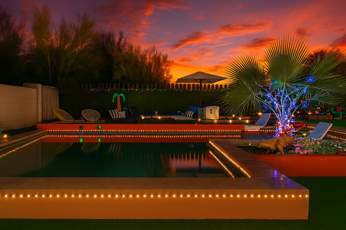 Escape to the best lakefront retreat in Arrowhead Lakes! Perfect for families and groups of up to 12, this two-story home combines relaxation, fun, and breathtaking lake & mountain views. Just 20–30 minutes from Phoenix and Scottsdale, you can unwind in the private pool and hot tub, challenge friends in the game room, enjoy peaceful catch-and-release fishing, or start your mornings on the dock. Only minutes from State Farm Stadium, it’s the perfect getaway for both comfort and adventure.