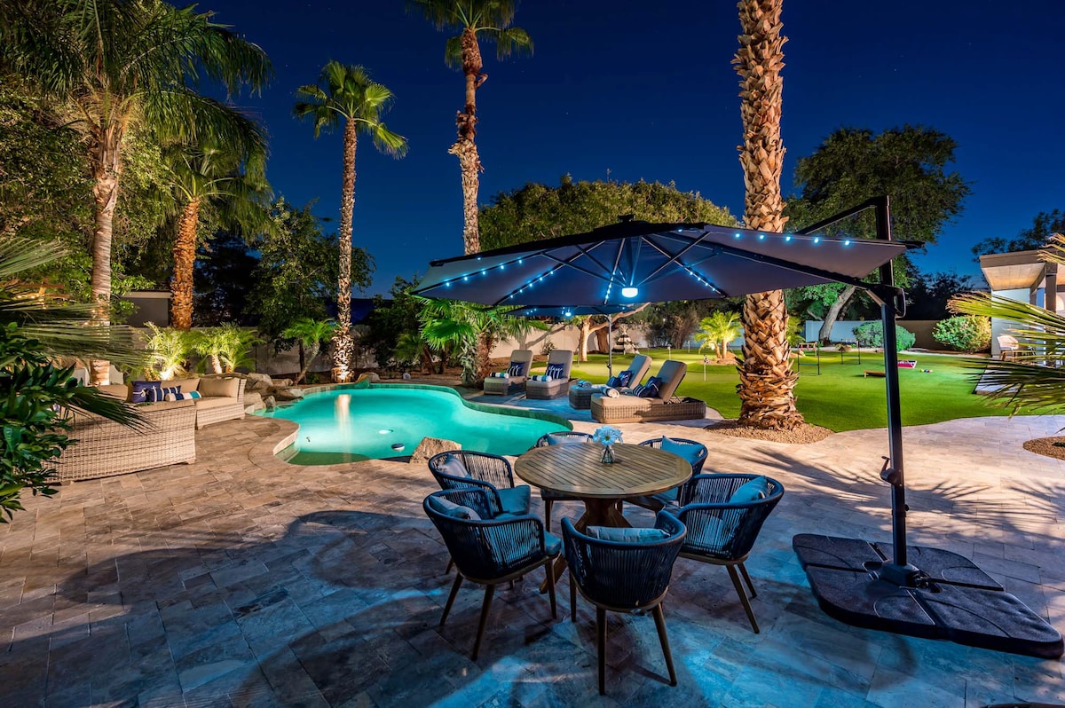 ★ Scottsdale’s Ultimate Social Oasis Walk 2 OT! ★ Designed for unforgettable moments — featuring a heated swim-up barstool party pool, a massive 12-person hot tub, and a resort-style backyard: palm trees, shade structure, gas grill, firepit, cable TV! This place has it all! #1 Old Town Scottsdale location just minutes from the hottest bars, restaurants, shopping & nightlife. Host a bachelor(ette) bash, birthday weekend, or family retreat! Guests RAVE about the vibe, location, and amenities.