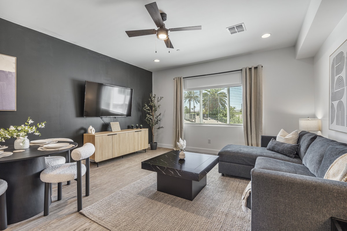 Stylish 1 Bedroom in centrally located Uptown! The best of Phoenix is at your doorstep. Enjoy one of many unique breweries, restaurants, speakeasies & coffee shops right around the corner from your lavish suite. A true hikers paradise as you are nestled in-between all of the majestic mountains. Catch a game at spring training, Diamondbacks, Cardinals, or Coyotes stadiums 10 minutes away. Enjoy Scottsdale right next door! Or best of all, enjoy a staycation with all of the resort style amenities.