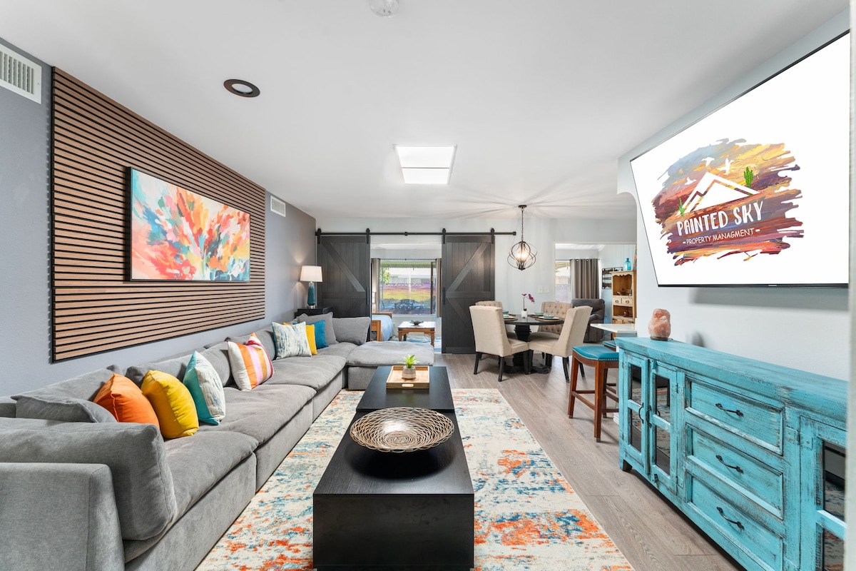 Escape to your own private retreat—unwind in the wood sauna, soak under the stars in the hot tub, or fire up the pizza oven for the perfect night in. This stylish three-bedroom, two-bath retreat offers more than just a place to stay—it’s an experience. With a seamless blend of modern comfort and resort-style amenities, your unforgettable getaway begins here. Ideally located just three miles from Peoria Sports Complex and two miles from Arrowhead.