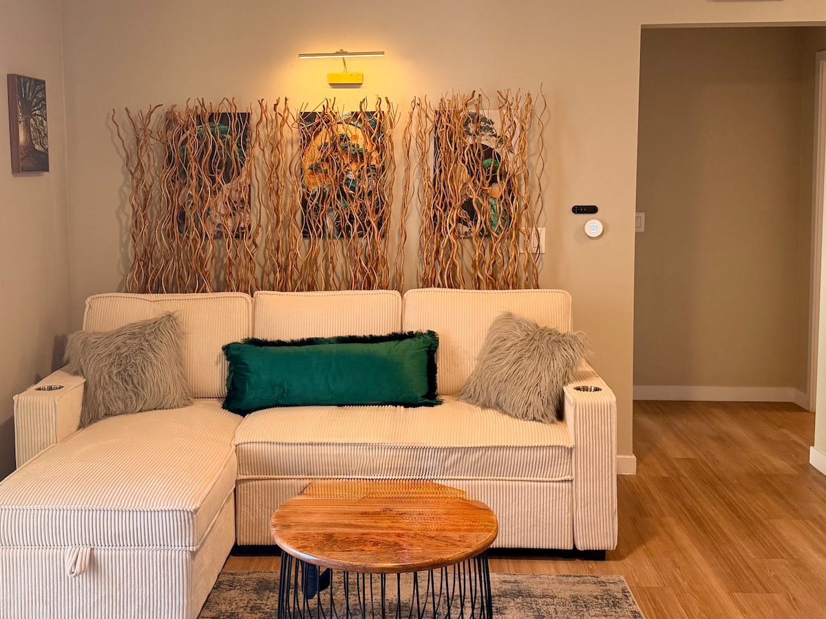 Relax at this private entire-home retreat featuring a heated pool, hot tub, wood sauna, and outdoor pizza oven. EV-friendly with a Level 2 EV charger for fast, convenient at-home charging. Guests enjoy private in-home laundry with a full-size washer and dryer, perfect for longer stays. Designed for comfort, relaxation, and effortless living—ideal for families, couples, or extended getaways. Just three miles away from the Peoria Sports Complex.