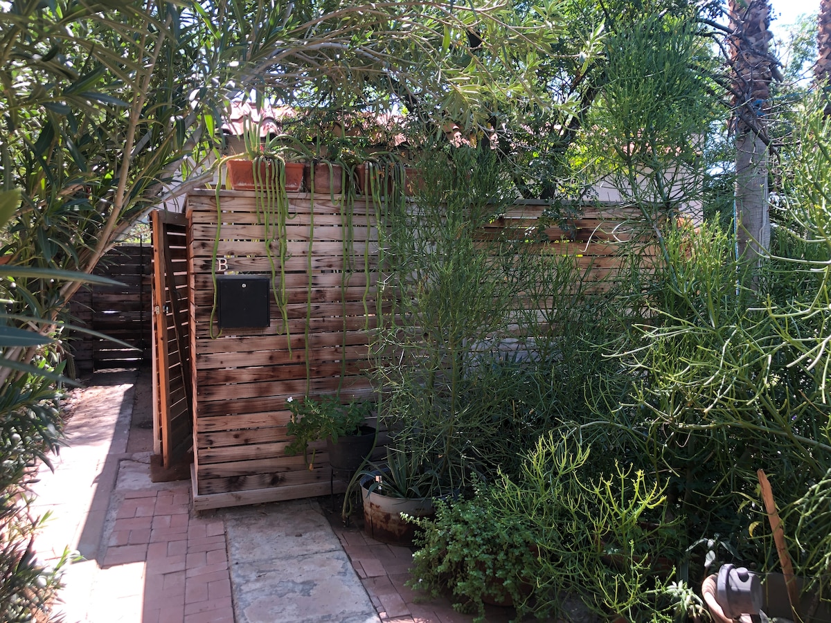 A contemporary industrial designed studio with sealed distressed cement floors and exposed pipes. A grey water system irrigates the lush southwest gardens. Be adventurous and choose the outdoor shower in the enclosed back patio to fully appreciate the warm weather! Tucked away in the historic F.Q. Story Neighborhood in downtown Phoenix. You are surrounded by charming historic homes as you walk the neighborhood. Close to local eats, parks, and museums. EVERYONE is welcome at Studio B!