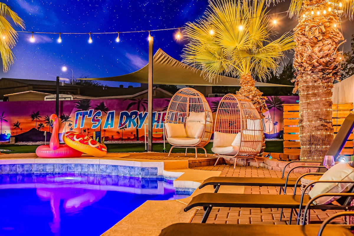 Phoenix Villa — the ultimate multi-family retreat! Dive into the pool, soak in the hot tub, or gather by the fire table. Play sand volleyball, basketball, yard games, or the 3-hole putting green, then head inside for arcade fun. With smart TVs in every bedroom and plenty of space, this villa is designed for comfort, style, and unforgettable memories. A true resort-style escape just minutes from Phoenix’s top attractions! You’ll never want to leave !!