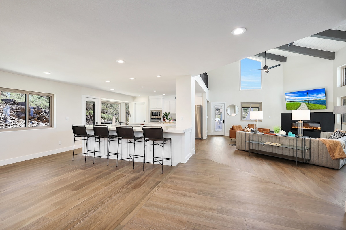 Enjoy a stylish experience on Black Mountain! Modern, designer, completely renovated gem! It offers luxury, privacy, serenity, 360-degree panoramic views. City lights, sunset, sunrise, mountain views from atop Black Mountain! Million dollar views from the 2nd level deck that wraps around the home with private access from the primary bed. A 2nd private deck is located off a guest bedroom! Huge outdoor space with fireplace, and large back yard with views of the peak of Black Mountain!