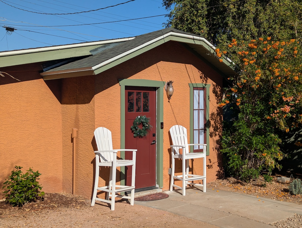 Reliably operated by a top AZ Superhost with 3,500+ 5 star reviews. Stay in style in Coronado Historic District! Our unique and private 1bdrm getaway is the perfect choice for couples or solo travelers (also dog friendly). Unwind in a clean, bright unit tucked away on the back of a WPA era triplex. Your own fenced and gated yard with a large shade tree, outdoor seating, BBQ, shade sails, bistro lights in the evenings, and view of sunsets in the west sky. Private parking in front of your gate.