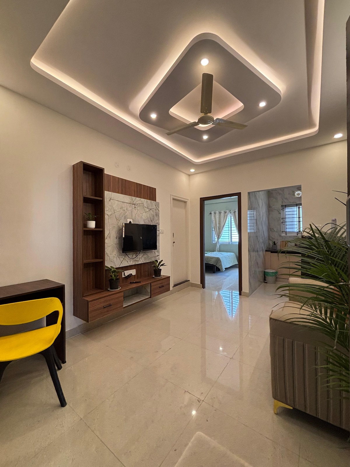 This fully equipped studio in the heart of Kaggadaspura is designed for comfort and convenience. With stylish interiors and thoughtful amenities, it’s a perfect spot for professionals, couples, or solo travelers. Inside, you’ll find everything you need: TV, WiFi, fridge, kettle, cooler, and cozy furnishings that make it feel like home. Step outside and you’re surrounded by local life — groceries, a tiffin center, and a Pan-Asian restaurant are right next door.