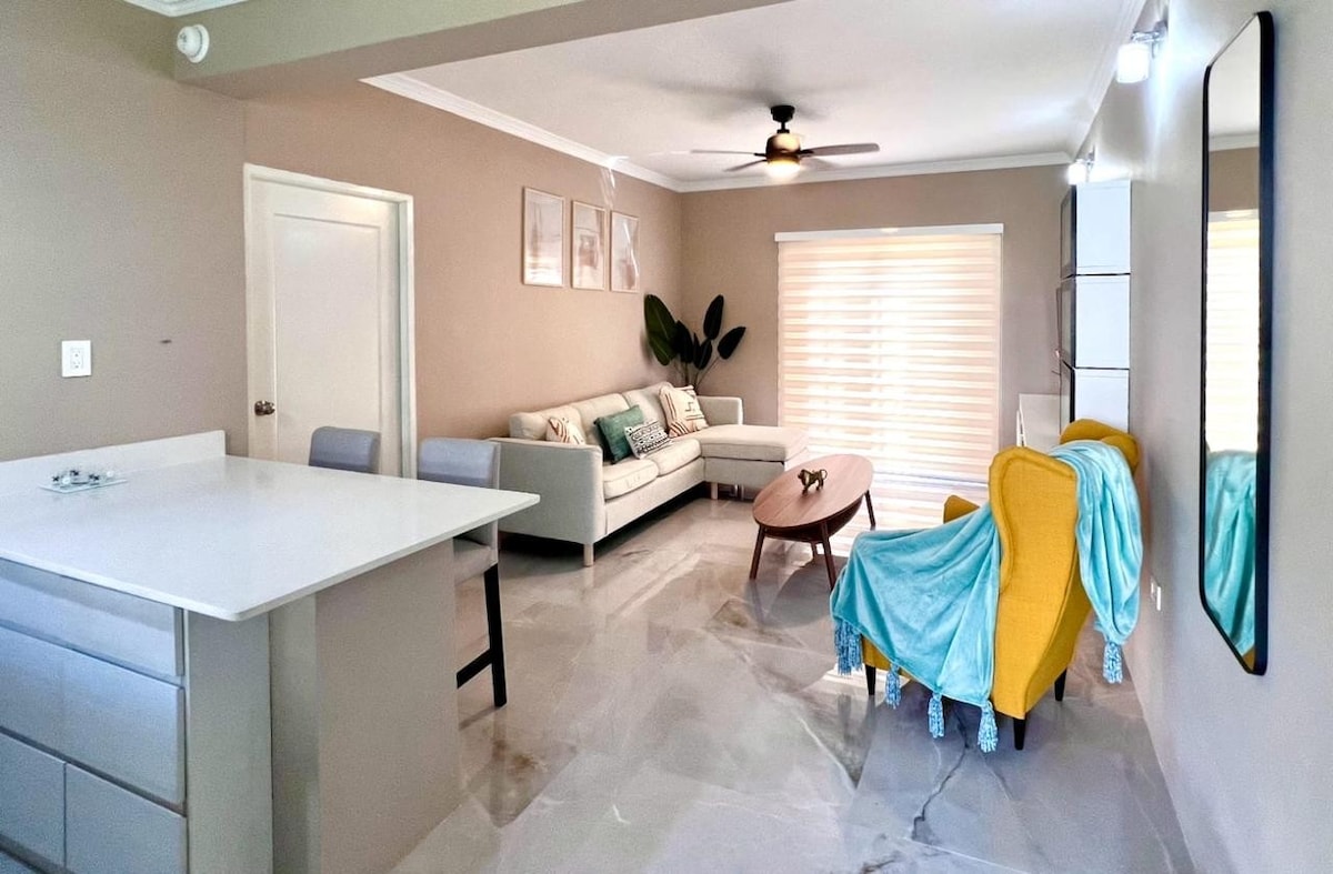 Our newly built 2 bedroom space is situated inside the secure gated community Phoenix Park Village, Portmore. Tastefully furnished for modern day living, our unit is fully furnished and equipped with all the essential amenities you could need. Located just 8 minutes from supermarkets, restaurants, movie theatre and much more. Enjoy a stylish experience at El Cameron - your home away from home Additional services such as car rental, housekeeping and bearer services are available upon request.