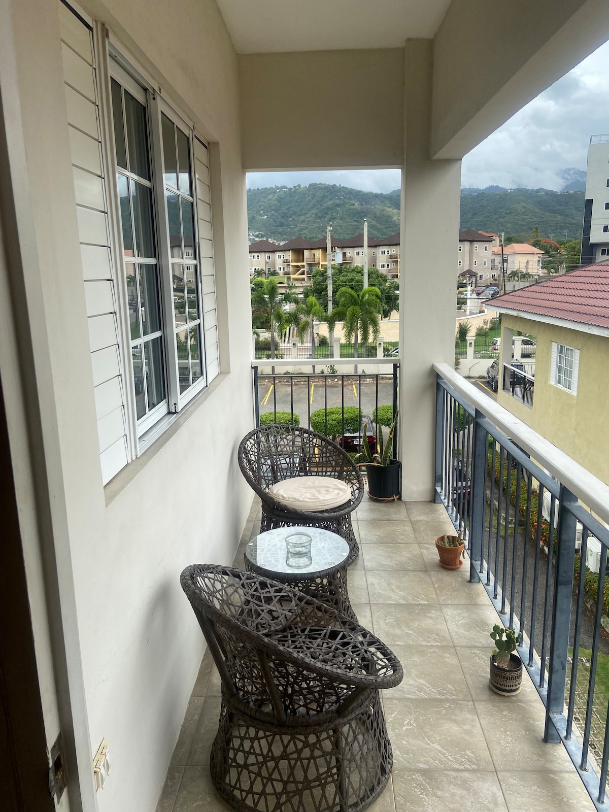 Simply but elegantly furnished one bedroom apartment in a gated complex on the 3rd floor. It is found within a gated complex with 24 hour security and located close to shopping and and entertainment hubs in Kingston. It features wooden accented furniture tastefully organized for style and comfort. The unit comes with Wifi And Cable television and a fully functional kitchen. Geographically located within walking distance from Devon House and Half Way Tree.