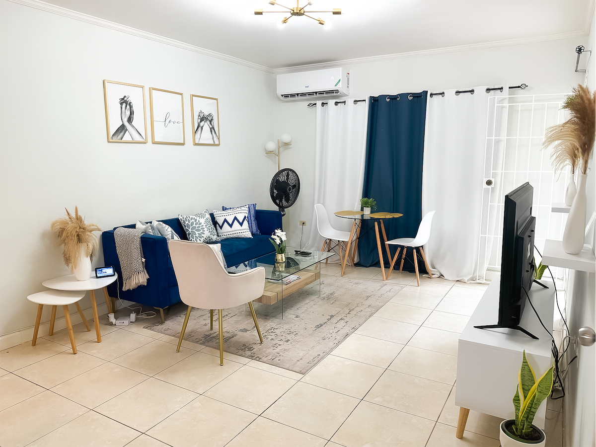 Our newly built 2 bedroom space is situated inside the secure gated community Phoenix Park Village, Portmore. Tastefully furnished for modern day living, our unit is fully furnished and equipped with all the essential amenities you could need. Located just 8 minutes from supermarkets, restaurants, movie theatre and much more. Enjoy a stylish experience at El Cameron - your home away from home Additional services such as car rental, housekeeping and bearer services are available upon request.