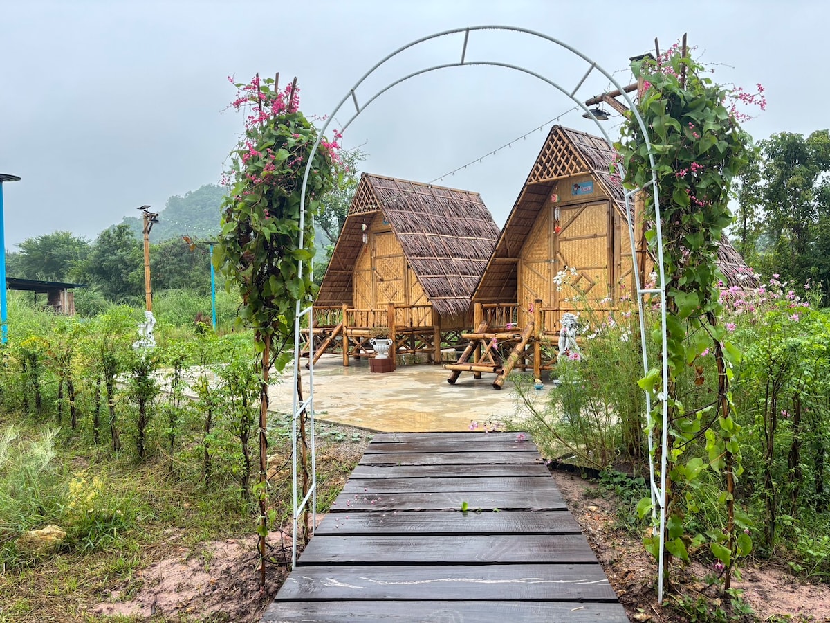 Let time slip away here in Thailand in an original Bamboo tiny house. Close to the Mae Klong River with peaceful walks & motor bike rides. Replete with privacy & pleasant rural surrounds. Take break and unwind at this peaceful oasis. Hut has 220V electric power & running water. A motor bike is for hire to explore further in this rural farming area. Close to famous attraction of Wat Khanon - Photharam look Internet for info. Delicious Thai food can be found, a short walk nearby.