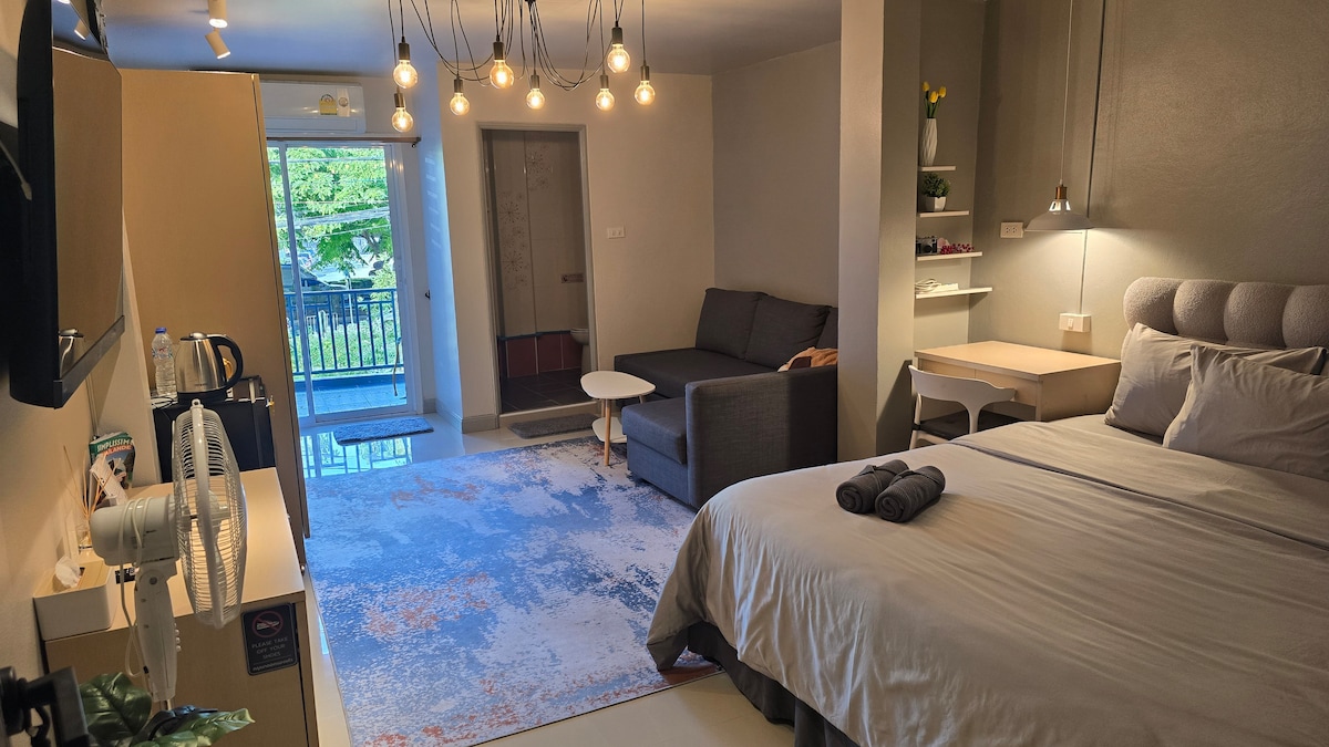 Bua Luang Room, 40 sqm on 3rd floor of The Knight House (TKH) Bangkok, a three-story building located in the center of Bangkok (Old Town) offers a cozy stay set in the historic Phraeng Phuthorn community with its rich Early Rattanakosin charm. It’s close to iconic landmarks like the Grand Palace, Reclining Buddha, Giant Swing, and Rattanakosin Island. Enjoy a comfortable home base surrounded by history, culture, and local vibes. ** Refer to “Other Things to Note” before make a reservation.**